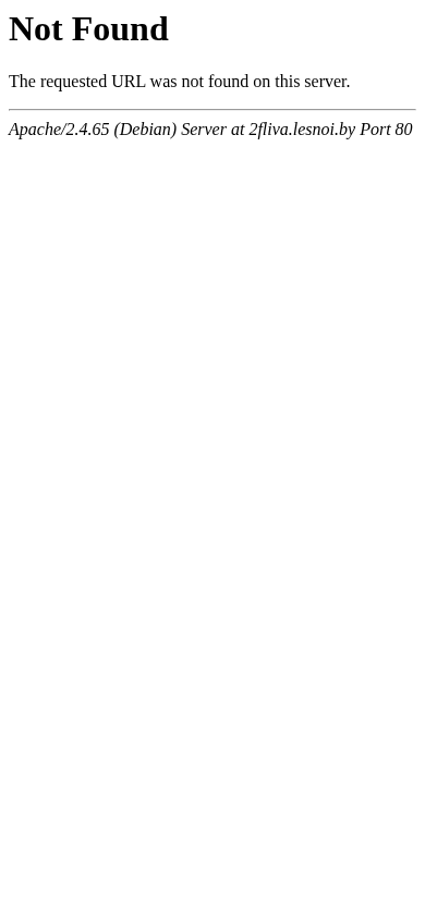 | AI-анализ | The portal 2fliva.lesnoi.by displays a standard 404 error message when an incorrect or missing URL is entered in the browser. The website is powered by the Apache 2.4.65 server software running on Debian operating system. The error message indicates that the requested URL could not be found on the server. |