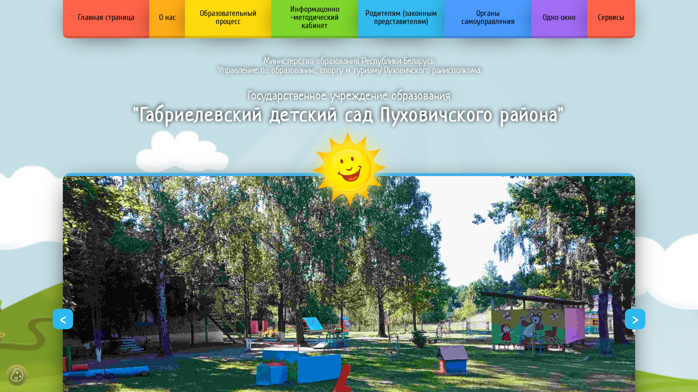 | AI-анализ | The portal "Габриелевский детский сад Пуховичского района" is a Belarusian government educational institution website dedicated to a kindergarten in the Puhozhichy District. The homepage includes sections on the kindergarten's administration, conditions for enrollment, schedules for operations, and contacts. Key topics for the site include education, institutions, work schedule, and contacts. The site provides information on the kindergarten's policies on data protection, interactive maps, and a primary labor union. Sections include 'About Us', 'Working Hours', 'Administration Contacts', 'Admission Conditions', 'Specialists', 'News', and 'Policies'. The website also offers educational resources and periodicals for educators, as well as normative legal documents and instructions for pedagogical workers. The domain is sad-gabrielevka. |