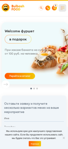 | AI-анализ | The web project "Bulbashfood.by" is a catering service in Minsk, Belarus, offering delivery of ready-made dishes for home or office events and corporate functions. The website provides menus for various items such as canapes, bruschettas, ruletikis, salads, tartletkas, mini-salads, cold appetizers, profiteroles, croissants, sandwiches, pancakes, hot appetizers, ready-sets, mini-shashlyckas, hot dishes, kish, banquet menus, side dishes, food boxes, and kiosk catering. Services include delivery and payment. The project is open from Monday to Saturday, 09:00-21:00, and Sunday, 10:00-21:00. The website also offers catering for special occasions |