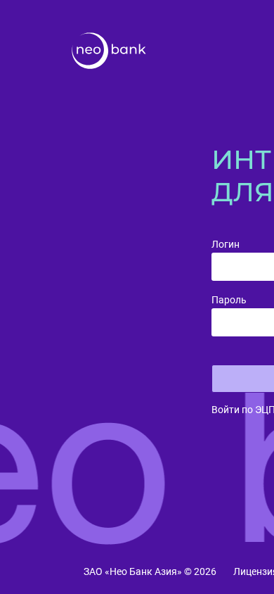 | Название / Заголовок | Логин - Neo Bank Asia IB |