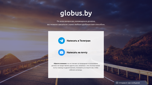 Сайт globus.by на данный момент продается. Для всех вопросов по домену обращайтесь к Hostfly. Не предоставляются никакие услуги, связанные с доменом. Если вы попали сюда случайно, пожалуйста, не пишите нам, чтобы избежать путаницы. Hostfly предлагает услуги хостинга и парковку домена по адресу www.hostfly.by.