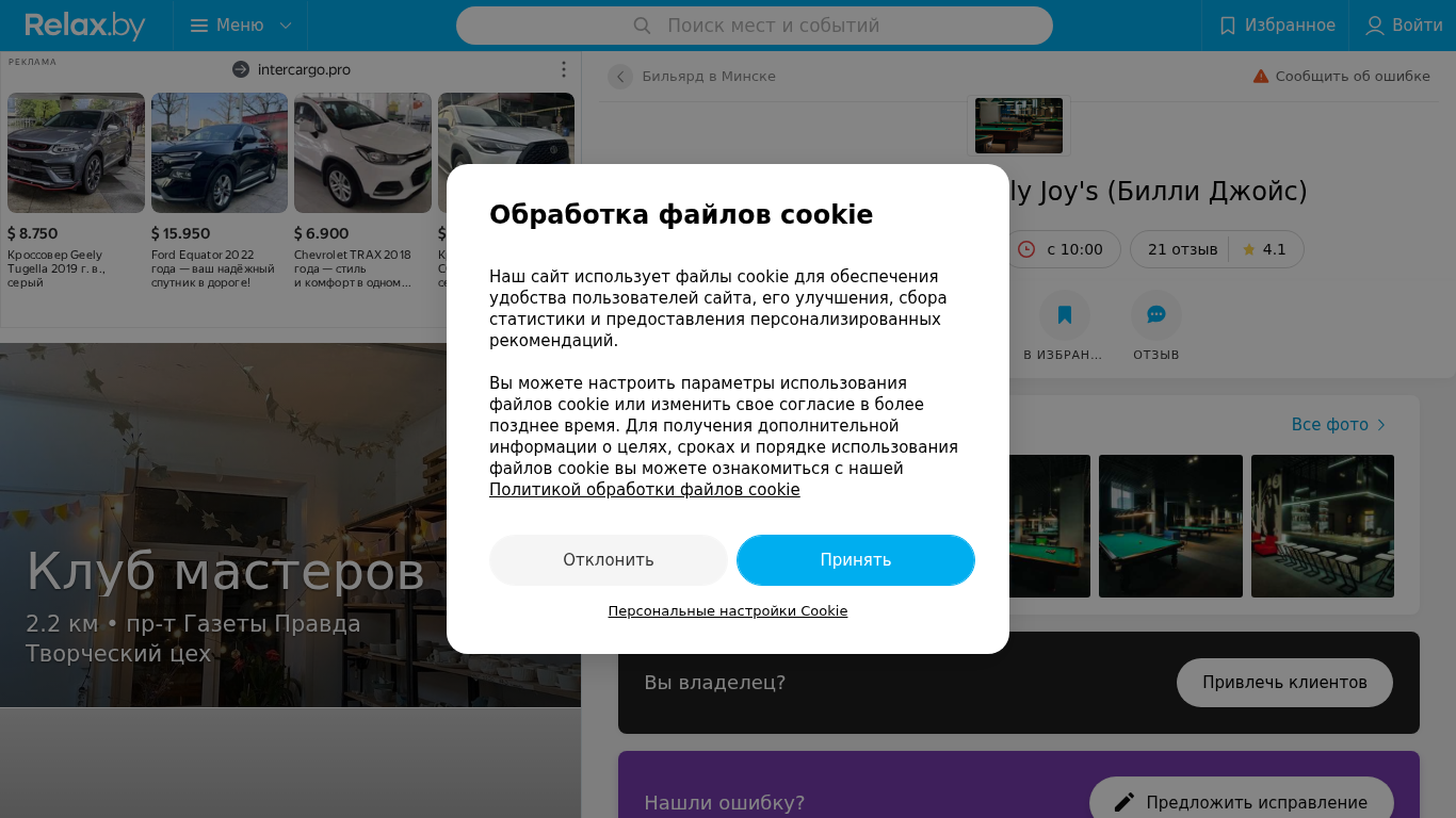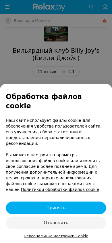 | SEO-описание | Бильярдный клуб Billy Joy's (Билли Джойс) в Минске – отзывы, телефоны, график работы и карта проезда на Relax.by |