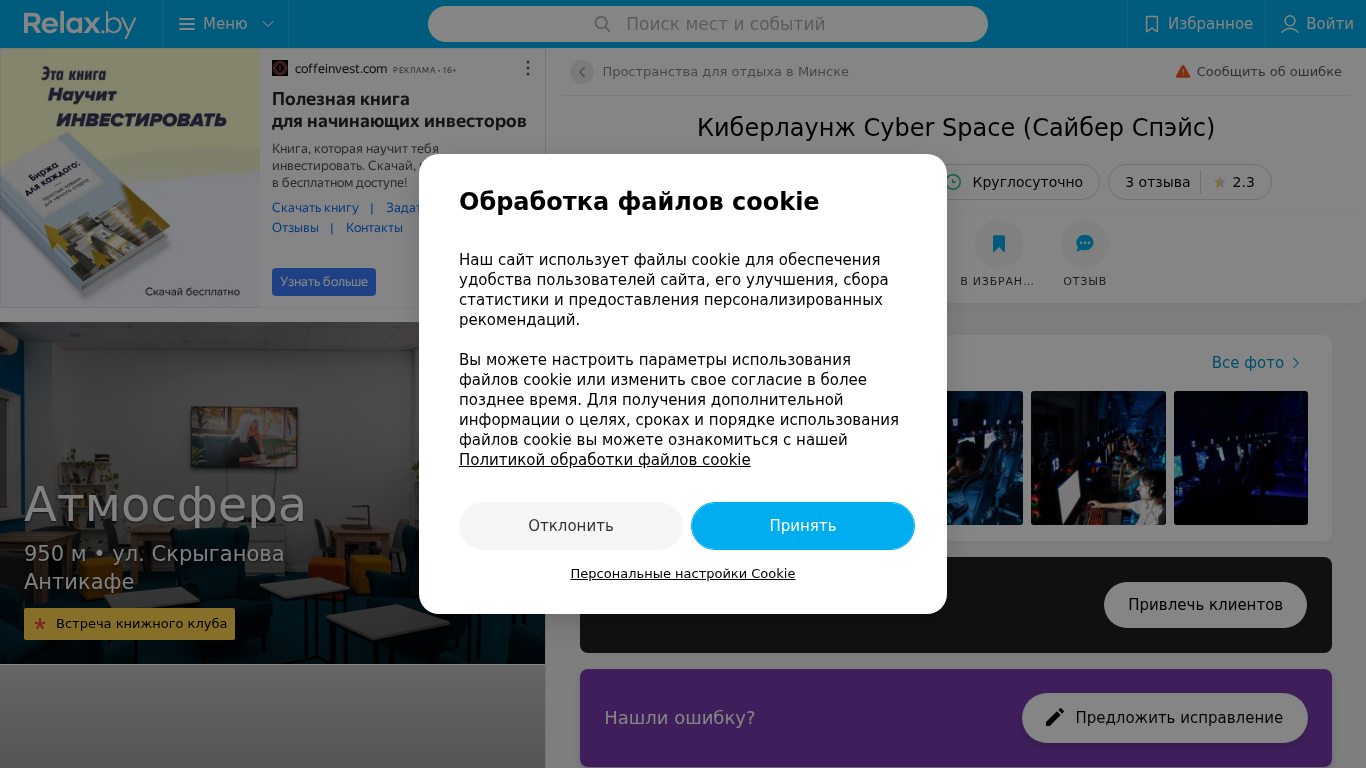 | SEO-описание | Киберлаунж Cyber Space (Сайбер Спэйс) в Минске – отзывы, телефоны, график работы и карта проезда на Relax.by |