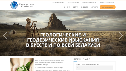 | AI-анализ | Портал topograf.by предлагает информацию по геологическим и геодезическим обследованиям, предоставляя инженерно-геодезические и инженерно-геологические услуги в Бресте и на всей территории Беларуси. Эти исследования являются ключевыми для правильного планирования проектов, поскольку они включают оценку рельефа местности и уникальных характеристик объекта, создание топографических карт, проведение буровых работ и анализ геологических условий. Компания "Качественные обследования" работает на рынке строительных услуг Беларуси более 15 лет. Клиенты могут обращаться за консультациями или заказывать инженерно-геодезические и инженерно-геологические услуги, включая топографические обследования и геологические исследования. На сайте также представлена форма для запроса цитирования на геологические или геодезические услуги, а также информация о преимуществах выбора компании. Геологи используют буровые установки, установленные на грузовиках ZIL-131, для проведения полевых работ. |