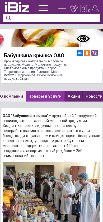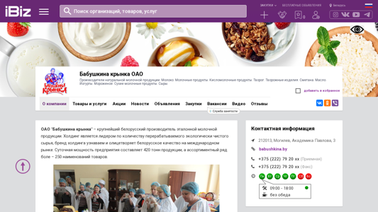 | AI-анализ | This online resource is the official website for OAO "Babushkina Krynka," a leading Belarusian dairy producer. The company specializes in the production and distribution of natural dairy products, including milk, various dairy items, sour milk products, cottage cheese and its derivatives, butter, yogurts, ice cream, and dry dairy products. The company's production capacity is 420 tons per day, and its product range comprises over 250 items. OAO "Babushkina Krynka" sells its products under well-known Belarusian brands such as "Babushkina Krynka," "ECO GRECO," "Веселые внучата," "Свежие новости," "Калі ласка," and "СлавГород." |
