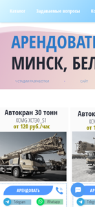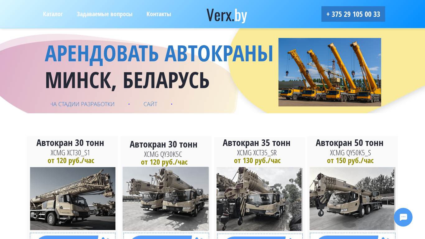 --- This website is an equipment rental service in Belarus, specializing in cranes with lifting capacities ranging from 20 to 100 tonnes. Verx offers reliable equipment for various tasks and operates 24/7 across the country. The rental price includes all necessary costs. Customers can choose and order a crane on the site. Keywords related to crane rental, rental costs, and various crane models and capacities are prominent.