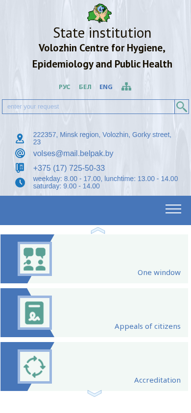 | SEO-описание | The official Internet site of the Volozhin Centre for Hygiene, Epidemiology and Public Health (Belarus) |
