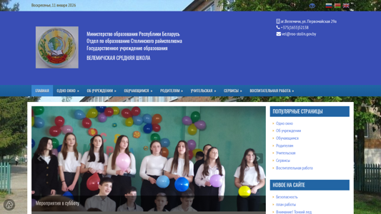 Этот онлайн-ресурс является официальным сайтом Велымичской Средней Школы, средняя школа расположена в Велымичах, Беларусь. Сайт содержит обширную информацию о школе, включая её администрацию, контактные данные и графики административных процедур и мероприятий для учащихся. Он также предлагает ресурсы для родителей, такие как организация столовой, транспортные услуги и университет для родителей. Сайт предоставляет информацию о структуре школы, включая её руководство, учителей и службы поддержки. Кроме того, он предлагает доступ к электронным версиям учебников, школьной библиотеке и школьному музею. Сайт также включает информацию о внеучебных мероприятиях, таких как клубы и мастер-классы, а также ресурсы для консультирования по карьерному развитию и профессиональному развитию учителей. Сайт управляется Министерством образования Республики Беларусь и Велымичским районным исполнительным комитетом.