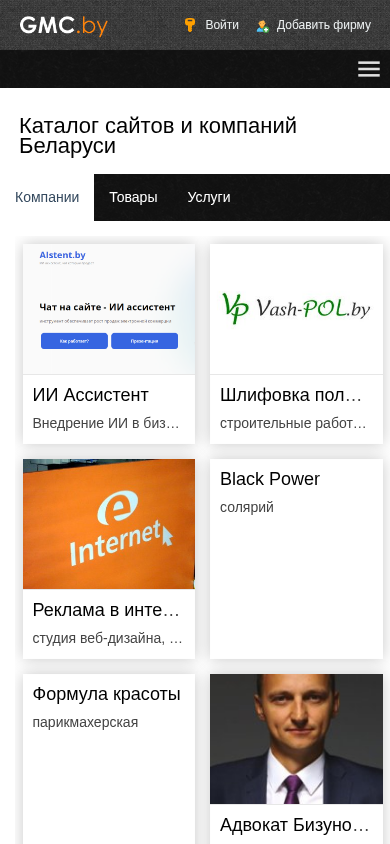 | SEO-описание | Каталог сайтов. Организации и фирмы Беларуси. Контакты, отзывы, товары и услуги. Доска объявлений. |