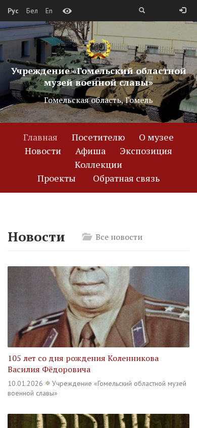 | SEO-описание | Учреждение «Гомельский областной музей военной славы» — новости и афиша мероприятий, информация для посетителей, цены, экспозиция, коллекции, материалы для музейщиков. |