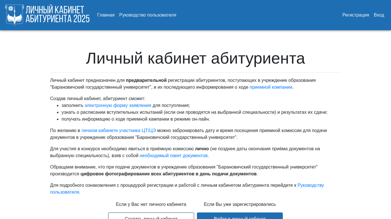 | SEO-лексика | барановичский государственный университет документов кабинет учреждение образования при 375 163 абитуриента личный приемной если barsu пользователя регистрации абитуриентов ходе подачи |