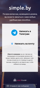 | AI-анализ | This website, titled "simple.by Выставлен на продажу", is currently for sale. All inquiries regarding the domain can be made through various methods, including Telegram or email. Please note that the sellers do not assume responsibility for any previous use of the domain or related services. If you arrived at this page for reasons other than purchasing the domain, kindly avoid contacting the sellers to prevent confusion. Additionally, the website, which is operated by Hostfly, offers website hosting and domain parking services at [www.hostfly.by](http://www.hostfly.by). To make an inquiry about the domain sale, users can send a message. |