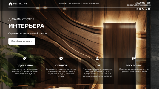 | SEO-описание | Дизайн студия Белый Лист предлагает широкий спектр услуг по дизайн интерьера и экстерьера в Минске по доступным ценам. Подробности по телефону +375 29 880-40-08. |