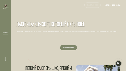 | AI-анализ | This website is an apartment sales platform for the residential complex 'Ласточка' (Lashtochka) in Brest, Belarus. Visitors can obtain information about the ongoing construction, prices, floor plans, and purchase options for apartments in the complex. The site features a phone number for customer inquiries, as well as a menu for selecting a desired apartment, learning about the building's progress, viewing galleries, news, infrastructure, and the developer. The design of the complex emphasizes comfort, modern architecture, and a natural look, with white accents and extensive glass windows. Amenities include a closed territory for residents' safety and privacy, underground and surface parking, a fitness center, workout areas, a children's playroom, and playground. The domain name is lasto4ka.by. |