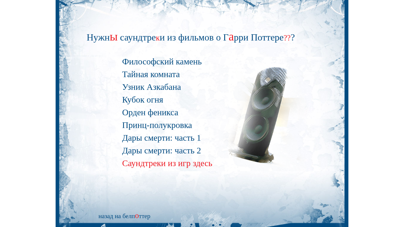 | Название / Заголовок | БелPotter.by – Саундтреки к фильмам о Гарри Поттере |