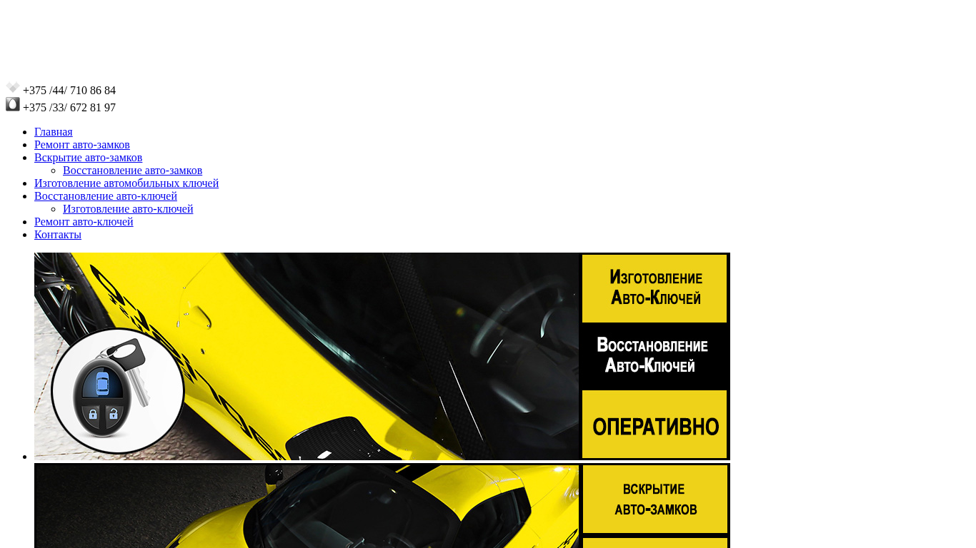 | SEO-описание | Восстановление автомобильных ключей с чипом (транспондером). +375447108684 Стоимость вскрытия замков примерно 20 бел руб, восстановление ключа с чипом (транспондером) примерно 100 бел руб. Выезд в любой регион РБ |