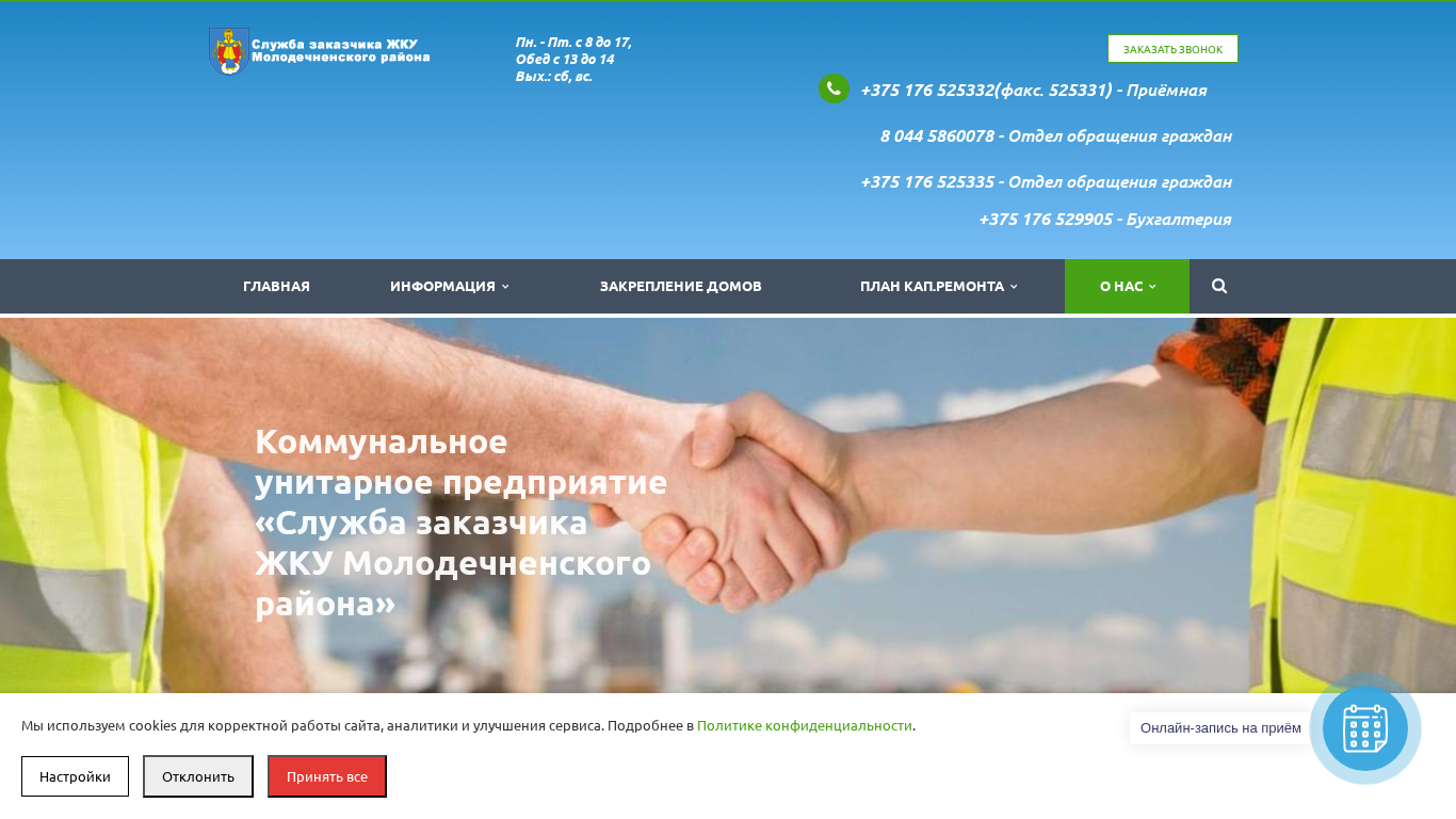 | Название / Заголовок | Служба заказчика ЖКУ Молодечненского района - Главная |