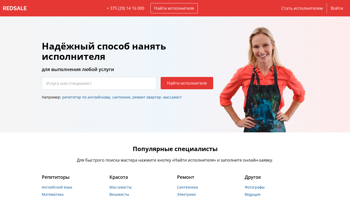 | SEO-описание | Редcейл – сервис по поиску проверенных мастеров в Гродно: мастеров по ремонту, репетиторов, артистов, спортивных тренеров и других профессионалов. На сайте собраны анкеты с указанием цен и отзывами от клиентов. |
