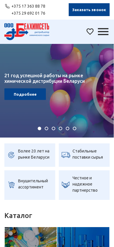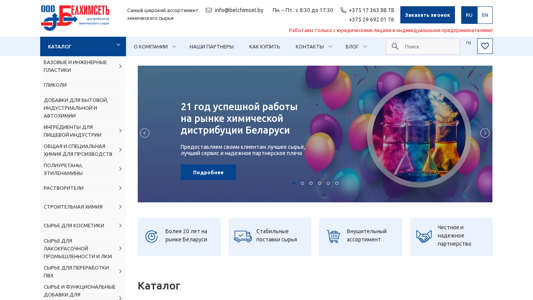 | SEO-описание | ООО «БЕЛХИМСЕТЬ» - национальный поставщик химического сырья на территорию Республики Беларусь ✓ Купить химическое сырье в Беларуси ✓ Более 20 лет на рынке ✓ Звоните ☎ +375 (17) 363 88 78 |