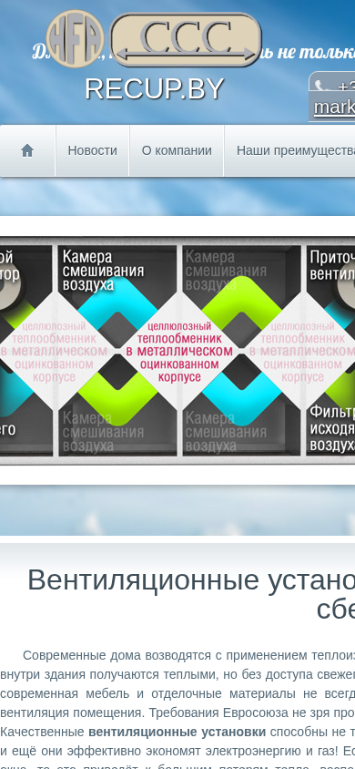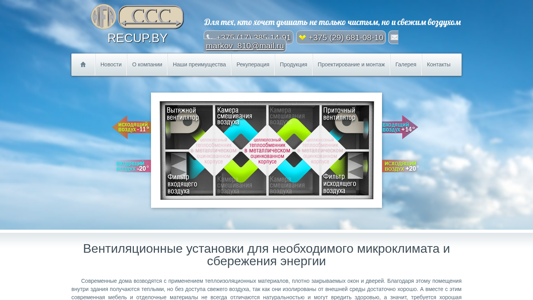 | AI-анализ | Сайт посвящен системам вентиляции для создания подходящего микроклимата и экономии энергии в частных домах. Recup.by предлагает современные установки вентиляции, которые помогают сэкономить на электричестве. В разделе контактов указаны телефонные номера +375 (17) 385-14-91 и +375 (29) 681-08-10, а также адрес электронной почты markov_810@mail.ru. Основными разделами сайта являются Дом, Новости, О компании, Наше преимущество, Восстановление, Продукция, Проектирование и Монтаж, Контакты. Сайт подчеркивает важность правильного вентиляции в современных изолированных домах, что может привести к недостатку свежего воздуха из-за их хорошей изоляции. Регламентирующие нормы Европейского Союза требуют, чтобы взрослый человек получал 30 кубометров чистого воздуха в час. Качественная вентиляция |