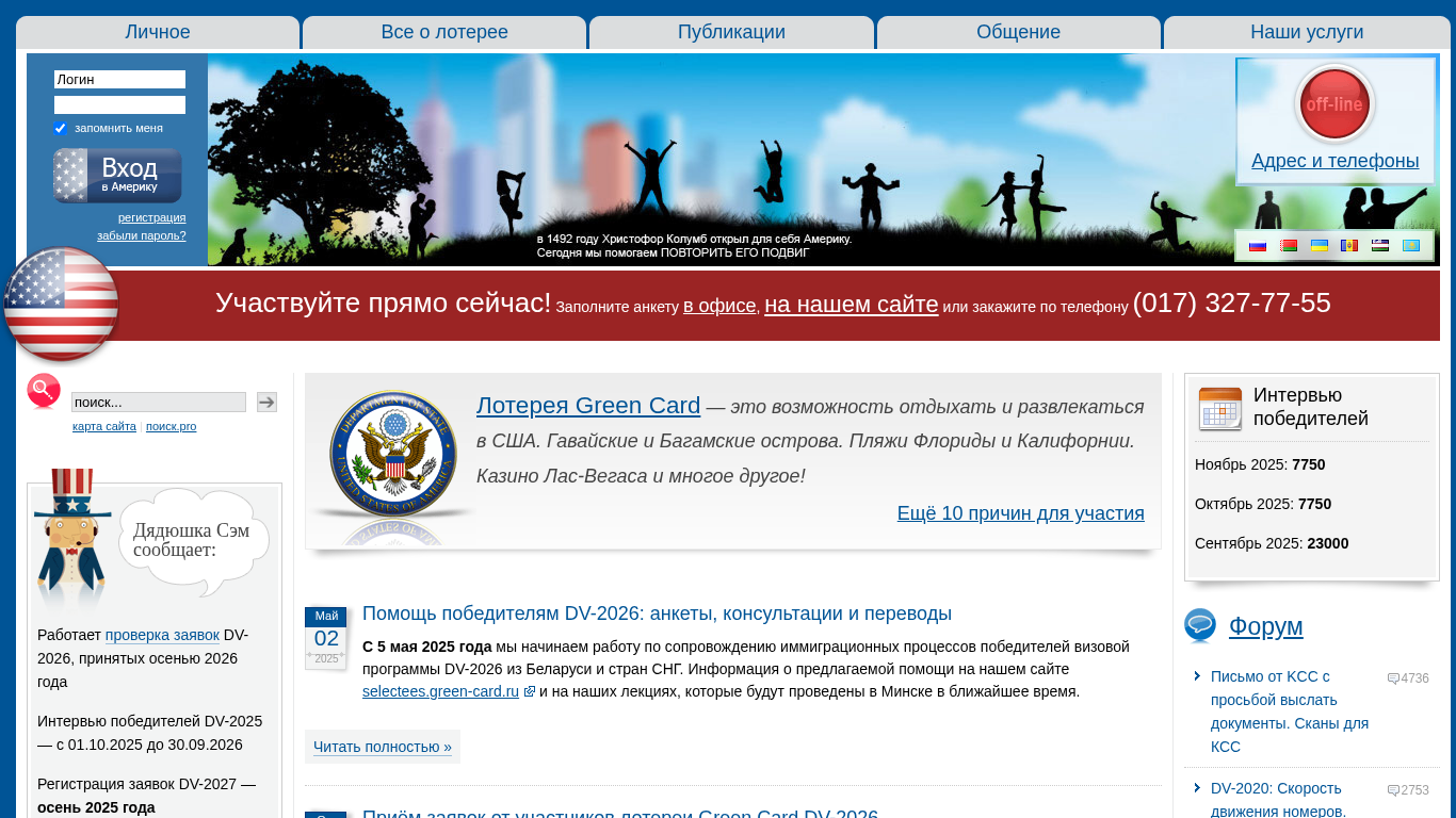 | Название / Заголовок | Лотерея Green Card lottery USA - выиграйте грин карту США! Участие в лотерее грин кард dv-2026, dv-2025 и dv-2024 на сайте GreenCard.by. Всё о лотерее гринкарт и получении гринкард в Америку! |