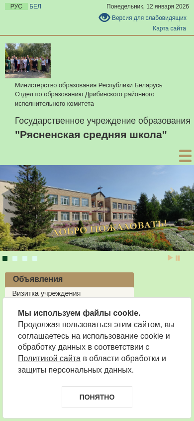 | Адрес | сярэдняй адукацыi, Населенный пункт:аг. Рясно, Адрес: 213980, Могилевская обл., Дрибинский р-н, аг. Рясно, Ул. Оршанская, 89 |