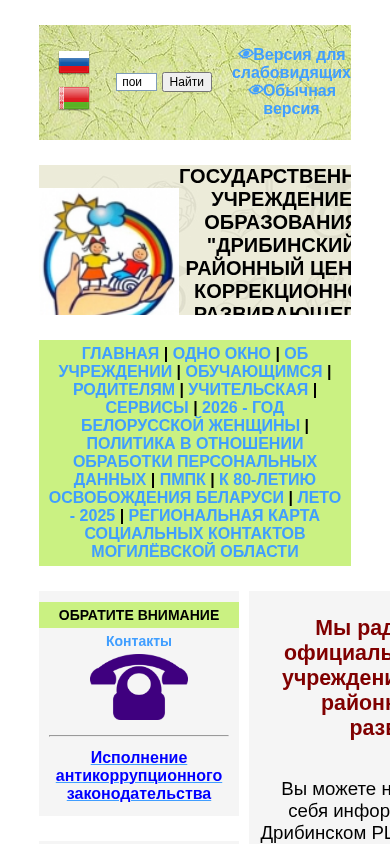 | AI-анализ | Портал <ckroir.dribin.edu.by> является официальным сайтом Центра коррекции и развития образования и реабилитации Дрибинского района, государственного образовательного учреждения, расположенного в городе Дрибин, Могилевской области Беларуси. Сайт предоставляет информацию о миссии центра, его услугах и предложениях для лиц с синдромом Аспергера (ASD), а также контактной информации, графике работы и объявлениях. Ключевые слова отражают темы образования, программы, времени, людей, получения дополнительной информации, детей, 375, образовательного учреждения, интеллектуального дефицита, специальных условий, edu, помощи, 2025, вакансий, развития и государственных организаций. Сайт включает разделы для института, студентов, родителей, учителей и услуг, а также календарь новостей и карту социальных контактов региона. На сайте предлагается единая платформа. |