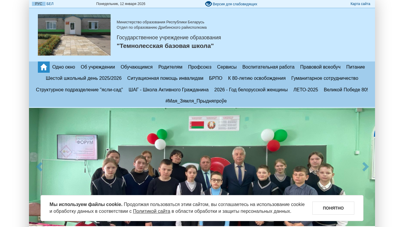| AI-анализ | Сайт "Темнолесская базовая школа" (temnoles.dribin.edu.by) представляет собой веб-сайт, управляемый Государственным образовательным учреждением "Темнолесская базовая школа" в Дрибин, Беларусь. Сайт предлагает информацию о школе, ее расписании, образовательных программах и различных инициативах. Ключевые слова, ассоциируемые с сайтом, включают '2025', '2026', 'многовозрастной' (rarnozovozrastnoi), 'профильный' (profilnyi) и 'отряд' (otryad). Сайт содержит календарь предстоящих мероприятий, новости, контакты и карту Министерства образования в Беларуси. Возможна доступ к миссии школы, администрации, педагогическому составу и важным документам. Кроме того, на сайте представлены различные разделы для удобства пользователя. |