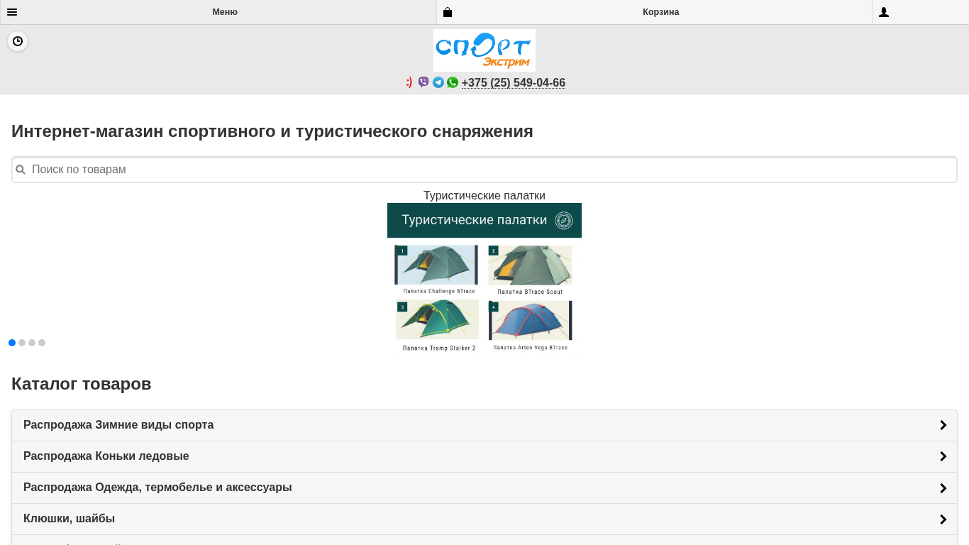 АдресИнтернет-магазин спортивного и туристического снаряжения «СпортЭкстрим» •, Карта сайта, 221030, РБ, г. Могилев, ул. Ленинская, д. 49/20