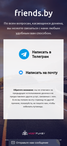 Этот сайт, названный "friends.by Выставлен на продажу" (Friends.by For Sale), предлагает информацию о продаваемом домене. Посетители могут связаться с продавцами через различные каналы, включая Telegram и электронную почту, для получения информации по домену. Важно отметить, что продавцы не отвечают на вопросы, касающиеся предыдущего использования домена или других связанных услуг. Услуги хостинга и парковки доменов предоставляются Hostfly, как указано в ссылке, расположенной внизу страницы.
