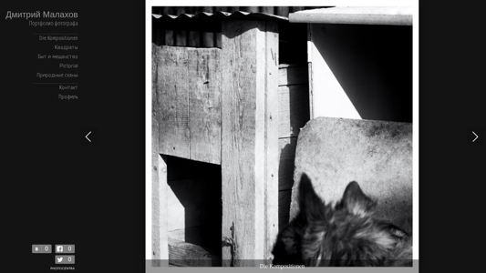 Проект веб-сайта "Малаков — Портфолио фотографа" представляет собой русскоязычный фотографический портфолио Дмитрия Малакова. Он состоит из нескольких разделов, включая "Die Kompositionen", "Квадраты", "Быт и мещанство", "Пикториальная", "Природные сканы", "Контакт" и "Профиль". Сайт демонстрирует коллекцию работ по фотографии, в основном акцентируя внимание на квадратных композициях и темах повседневной жизни и городской среды. Заголовок и описание сайта указывают на то, что это портфолио для фотографа Дмитрия Малакова. Слова, выделяемые в начале сайта, предполагают наличие элементов пикториальной фотографии, природных сканов и различных композиций.