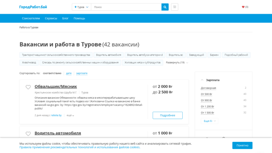 | Адрес | Дополнительная ..., 15 часов назад, с, gov.by, ещё, от, 2 000, Br, Подробнее, Все вакансии в компании Туровщина, Тракторист-машинист сельскохозяйственного производства, от, 1 |