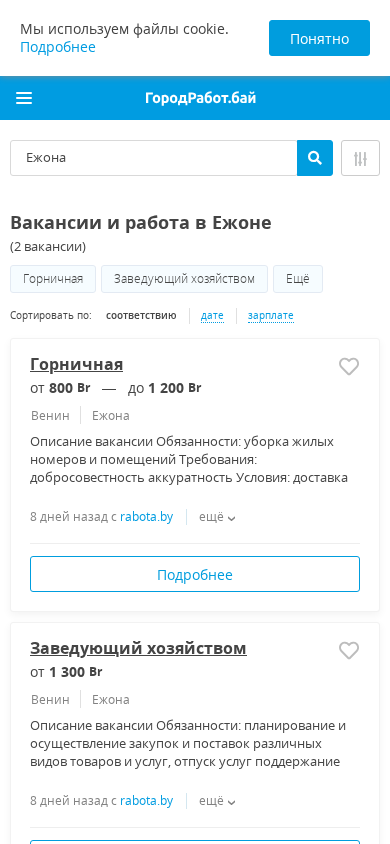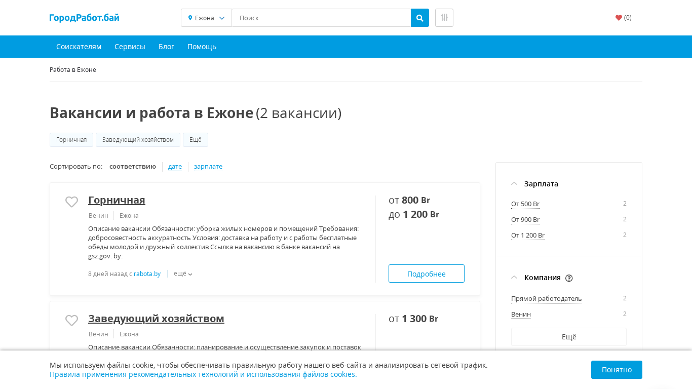 | SEO-описание | Ищете работу в Ежоне? На нашем сайте Вы найдете множество вакансий от прямых работодателей. Быстрый и удобный поиск вакансий с ГородРабот.бай |