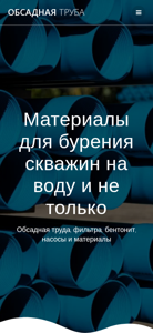| SEO-описание | Бурение скважин Материалы для бурения скважин на воду и водопонижение. Обсадные трубы, скважинные фильтра, буровые смеси и фитинги Обвязка скважин Широкий выбор оборудования для монтажа. Насосы для скважин. Меммбранные баки и автоматика. Фитинги, труба, трос и прочее. Канализация Станции биологической очистки. Септики и материалы для монтажа Мы занимаемся обсадной трубой более 10 лет Постоянное наличие |