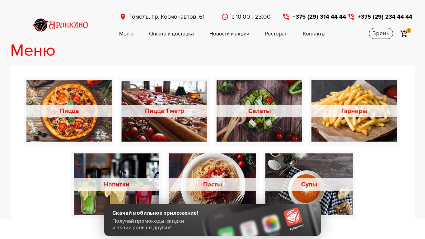 | SEO-описание | Доставка еды в Гомеле из лучшего ресторана-пиццерии «Арлекино» в Гомеле ☞ На нашем сайте. ✓ Мы предлагаем приятные цены, вкусное меню и самые свежие ингредиенты! |