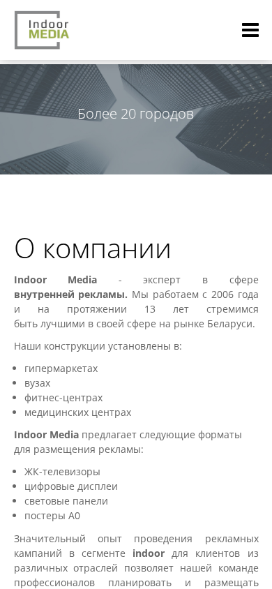 | Название / Заголовок | Внутренняя реклама в Минске и Беларуси | Indoor Media |