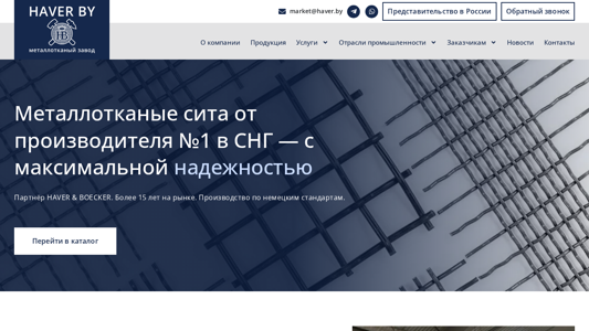 | AI-анализ | Сайт Haver.by посвящен производству и продаже промышленных сит и экранов. На сайте представлена информация о продуктах и услугах компании, включая промышленные сита, проектирование сит по индивидуальным заказам клиентов, а также преобразование гравийных экранов с системами натяжения. Сайт также упоминает обслуживаемые отрасли, такие как химическая и горнодобывающая промышленность, и предлагает контакты для запросов и информации. Сайт акцентирует внимание на металлических сетях сит, подчеркивая их надежность, эффективность и долговечность в качестве ведущего производителя в странах СНГ. Haver.by является официальным партнером HAVER & BOECKER и работает более 15 лет, производя продукцию по немецким стандартам. Головной офис компании расположен на территории площадью 6900 м², оснащенный немецкой техникой, ежемесячно выпускает 200 тонн готовой продукции и employs более 1 |