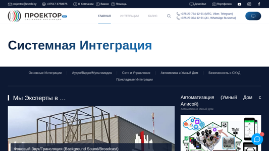 | Название / Заголовок | Системная Интеграция для Дома и Бизнеса - ПРОЕКТОР.бел by ETech.by |