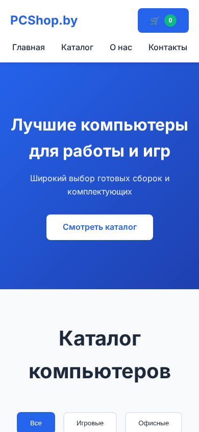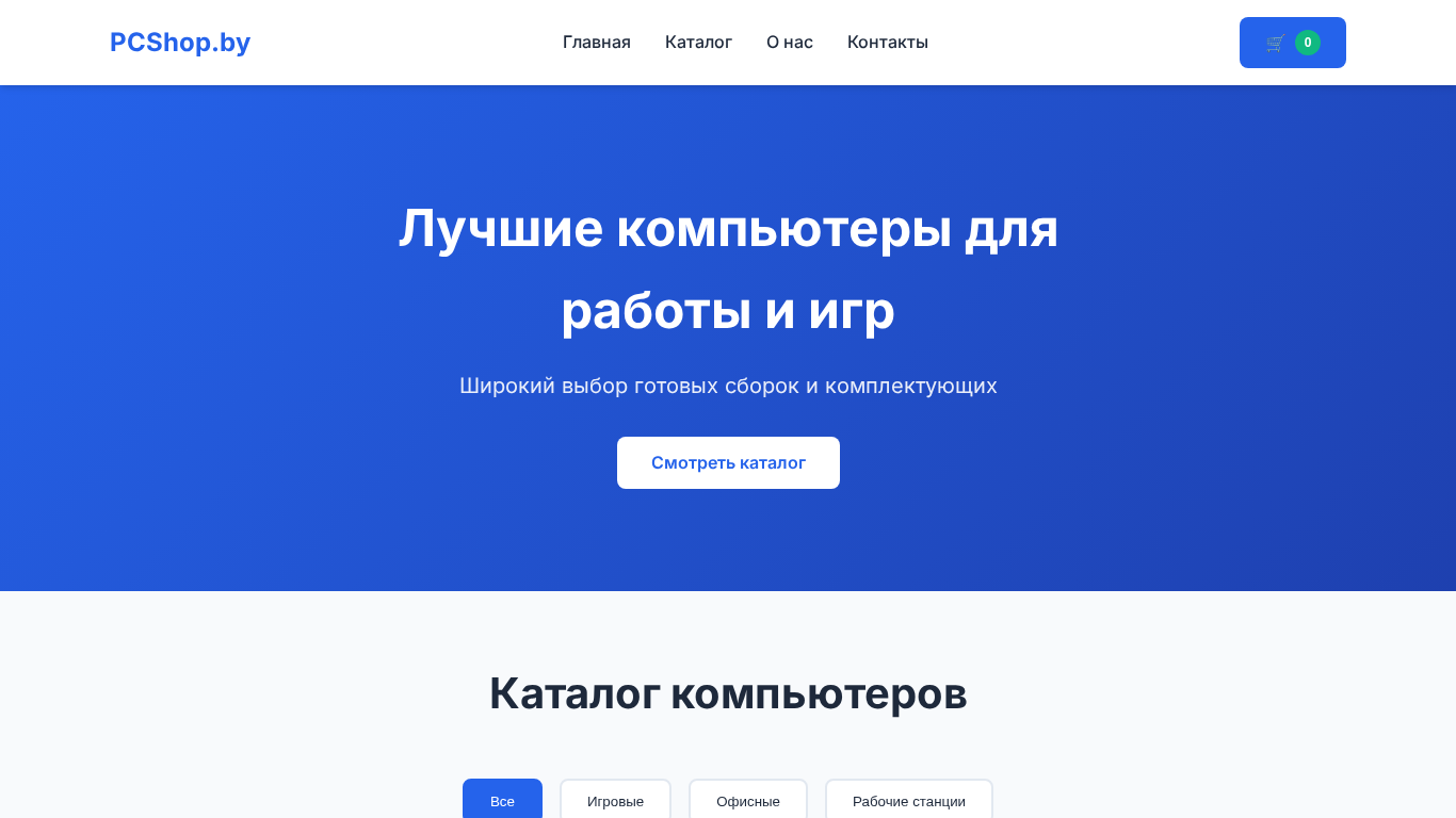 | AI-анализ | Сайт PCShop.by представляет собой электронную коммерческую платформу, предлагающую продажу компьютеров и комплектующих с названием "Компьютеры и комплектующие" и описанием "PCShop.by - ваш надежный партнер в выборе компьютерной техники. Мы предлагаем только качественные сборки от проверенных производителей." На сайте имеется раздел каталог, включающий различные типы компьютеров, включая игровые и офисные модели. В верхней части ключевые слова включают "byn," "корзина," "детали," "intel," "pcshop," "ядерный процессор," "NVIDIA," "RTX," "DDR5," "каталог," "все," "игровой," "32 ГБ," "офисный," "офис," "UHD," "графика," "DDR4" и "AMD." |