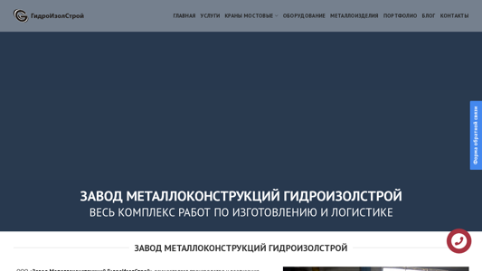 Этот сайт предназначен для металлостроительного завода в Минске, Беларусь, носит название ГидроИзолСтрой (GidroIzolStroy). Компания работает уже более 10 лет и предлагает полный спектр услуг по производству и логистике металлических конструкций. Сайт содержит информацию о сертификатах, включая те, что касаются строительства из стального профиля (GOST 23118-2012), сварных соединений для арматурных бетонных конструкций (STB 2174-2011) и подвесных кранов (TU BY 631597467.001-2015 и TU BY 691799580.006-2019). Компания также владеет сертификатами на продукцию, производство сварки, ISO, ISO-