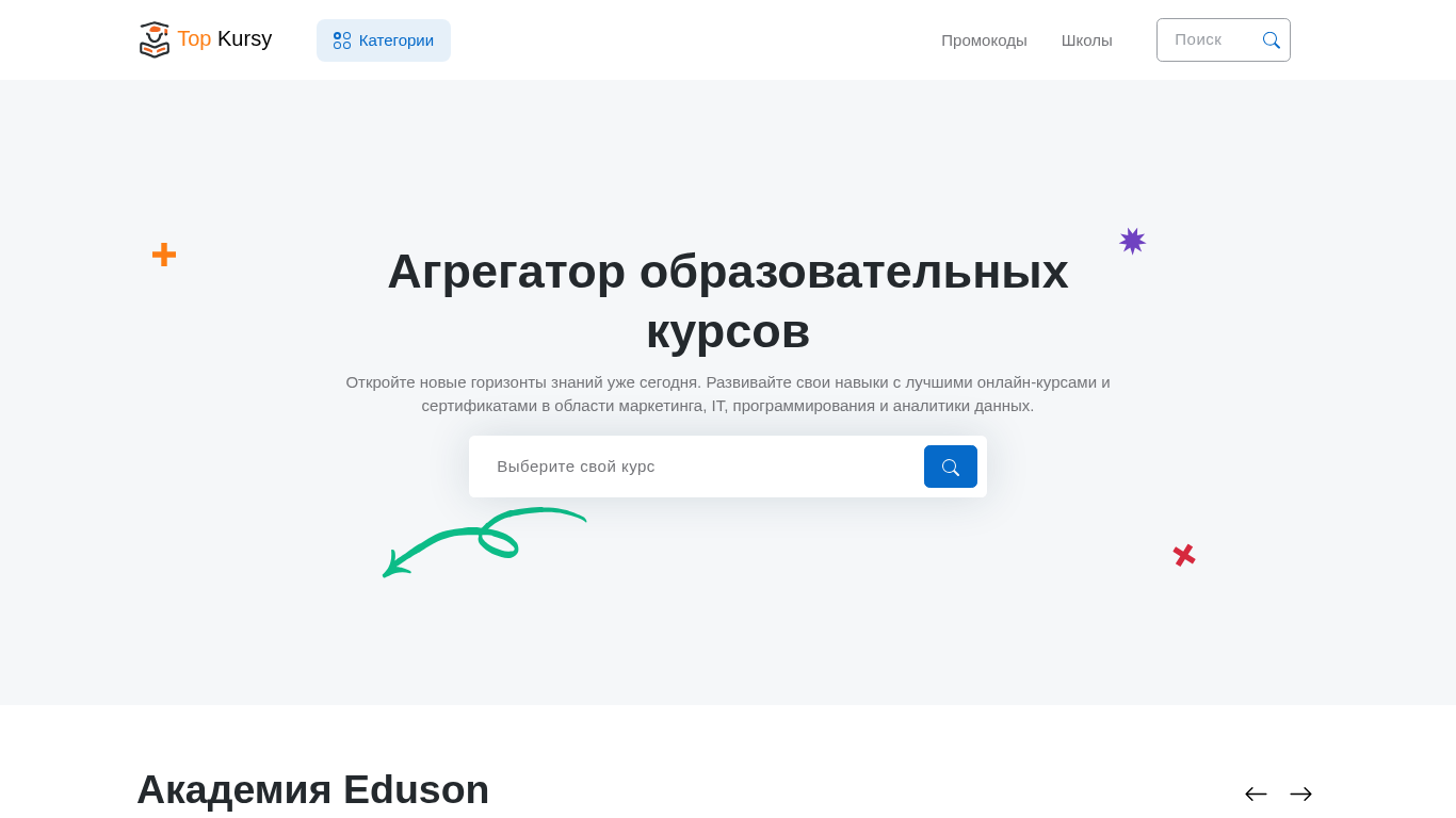 Этот онлайн-ресурс, Topkursy.by, предлагает курсы для получения современного образования дистанционно. Заголовок гласит: "Онлайн-курсы : обучение современным профессиям, получите образование дистанционно," и описание указывает на то, что платформа расширяет свои возможности за пределы IT и цифровых технологий, предлагая курсы в области финансов, маркетинга, бизнеса и психологии. Анализ ключевых слов показывает категории, такие как программирование, наука о данных, дизайн, управление бизнесом и финансы. Примеры конкретных курсов внутри этих категорий включают 1С-разработчика, Power BI, Figma, MBA и развитие клиента. Домен topkursy.by предлагает широкий спектр образовательных возможностей в различных областях.