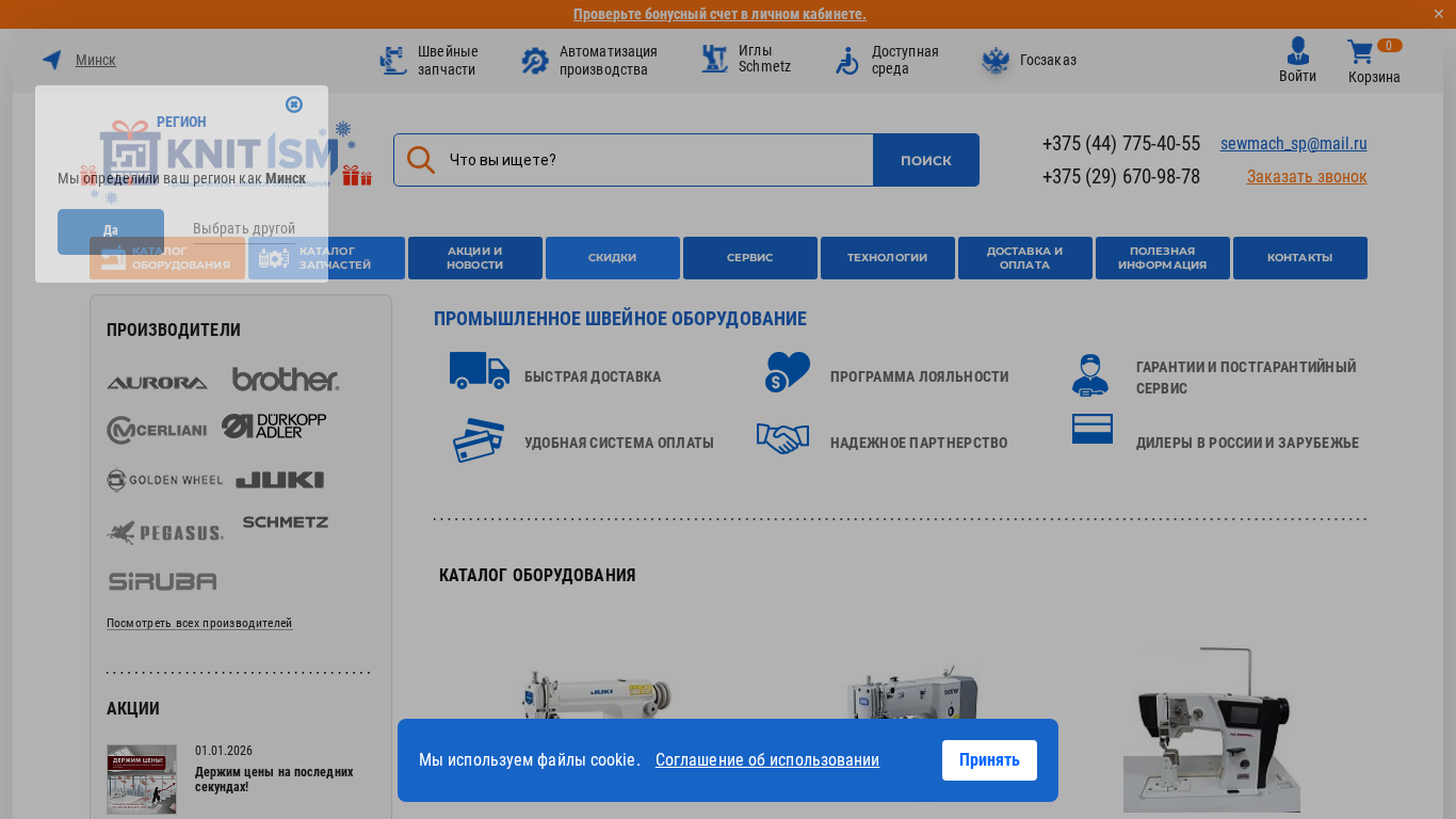 | SEO-описание | ⭐ Купить промышленное швейное оборудование в Минске ⏩ Бесплатная доставка и сборка ⭐【Бонусы от 3 до 10% от цены】⭐ Звоните! |