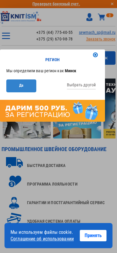 | AI-анализ | Этот сайт является онлайн-магазином для промышленного оборудования и запчастей под названием KNiTiSM.ru. Он расположен в Минске, Беларусь, и предлагает бесплатную доставку и сборку. Покупатели могут получать скидки от 3% до 10% на свои покупки. В магазине продаются различные типы швейных машин, включая те, что имеют C- и S-тип питания, а также машины для однократного, тройного или специализированного питания, и те, предназначенные для обработки определенных материалов, таких как легкие, средние, тяжелые или сверхтяжелые ткани. В ассортименте представлены оверлоки, машинка для бахромы, сергеры, а также различные типы швейных столов и двигателей. Кроме того, магазин предлагает решения для производства матов и ковров, а также для вышивки, вязки и других видов обработки ткани. Покупатели могут найти оборудование для производства матов и ковров, а также для... |