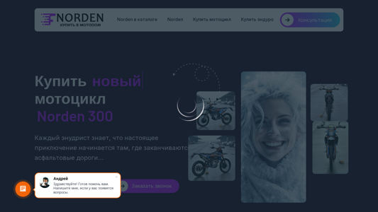 | AI-анализ | Портал norden.motodom.by представляет собой белорусский сайт, посвященный продаже мотоциклов RegulMoto NORDEN. Заголовок сайта "Купить RegulMoto NORDEN в Беларуси от официального представителя" переводится как "Покупка RegulMoto NORDEN в Беларуси у официального дилера". Описание включает информацию о популярном модели Norden, её мощном двигателе 172FMM-5 с объемом 300 кубических см и мощностью 23 л.с., а также о пятиступенчатой коробке передач и системе охлаждения воздуха. Сайт также указывает, что компания является официальным представителем RegulMoto в Беларуси и предлагает полный спектр услуг, включая возможность тестового пробега мотоцикла. |