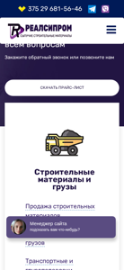 Сайт Realsiprom является белорусской компанией, специализирующейся на продаже и доставке песка, гравия и щебня. Предлагая как оптовые, так и розничные продажи, компания обеспечивает доставку с использованием специализированного транспорта. Основанная в 2010 году, она расположена по адресу ул.Плеканова, 56, корп.3. Сайт предоставляет информацию о продаваемых материалах, включая песок, очищенный песок, песок различных классов, асфальтовый гравий, ПГС, гравий и посадочную почву, а также услуги по удалению строительного мусора, транспортировке на земле и земляным работам. Компания предлагает в аренду оборудование, включая грузовики Maz-Man, экскаваторы и мини-ловчики Bobcat. Сайт содержит ценник на стройматериалы и товары, а также контактную информацию.