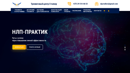 | AI-анализ | The portal Stalker.by offers psychological trainings and personal growth. Trainings include NLP, personal growth, and self-effectiveness. They conduct trainings in all regional cities of Belarus. Keywords: NLP-practitioner, course, register, trainings, all, center, NLP, more, vitsebsk, stalker, self, know, course, very, life, myself, 375, NLPt, training, person. |