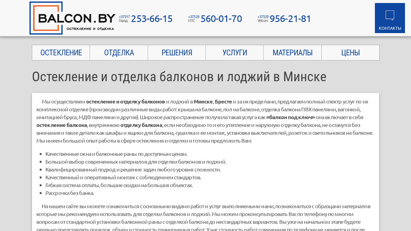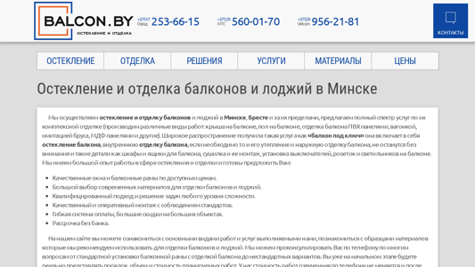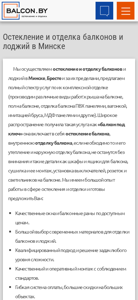 | SEO-описание | Остекление и отделка балконов и лоджий, ремонт балконов под ключ в Минске. Узнайте как получить от балкона максимум по хорошей цене! |