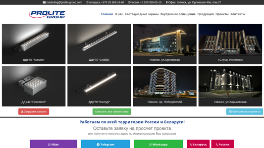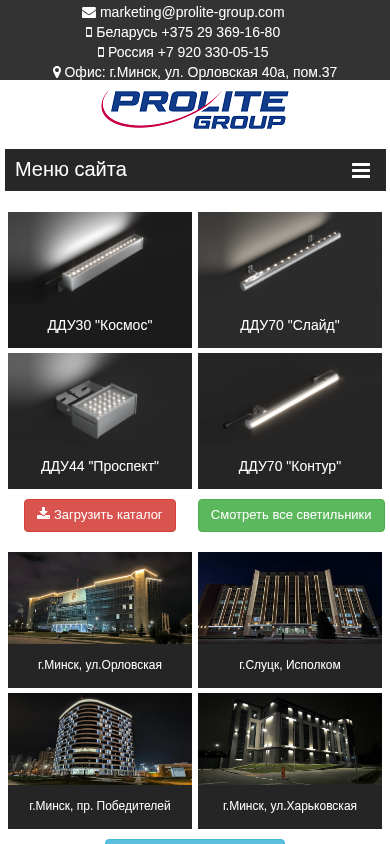 | Адрес | Контакты, marketing@prolite-group.com, Беларусь +375 29 369-16-80, Россия +7 920 330-05-15, Офис: г. Минск, ул. Орловская 40а, пом.37 |