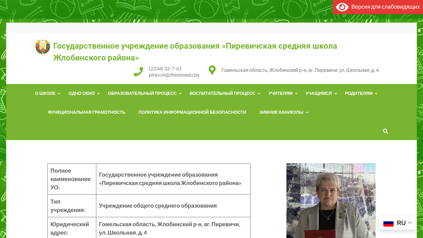 | Название / Заголовок | Государственное учреждение образования «Пиревичская средняя школа Жлобинского района» |