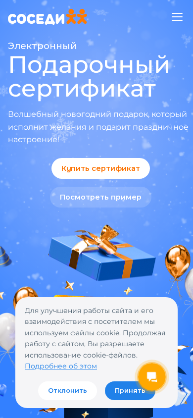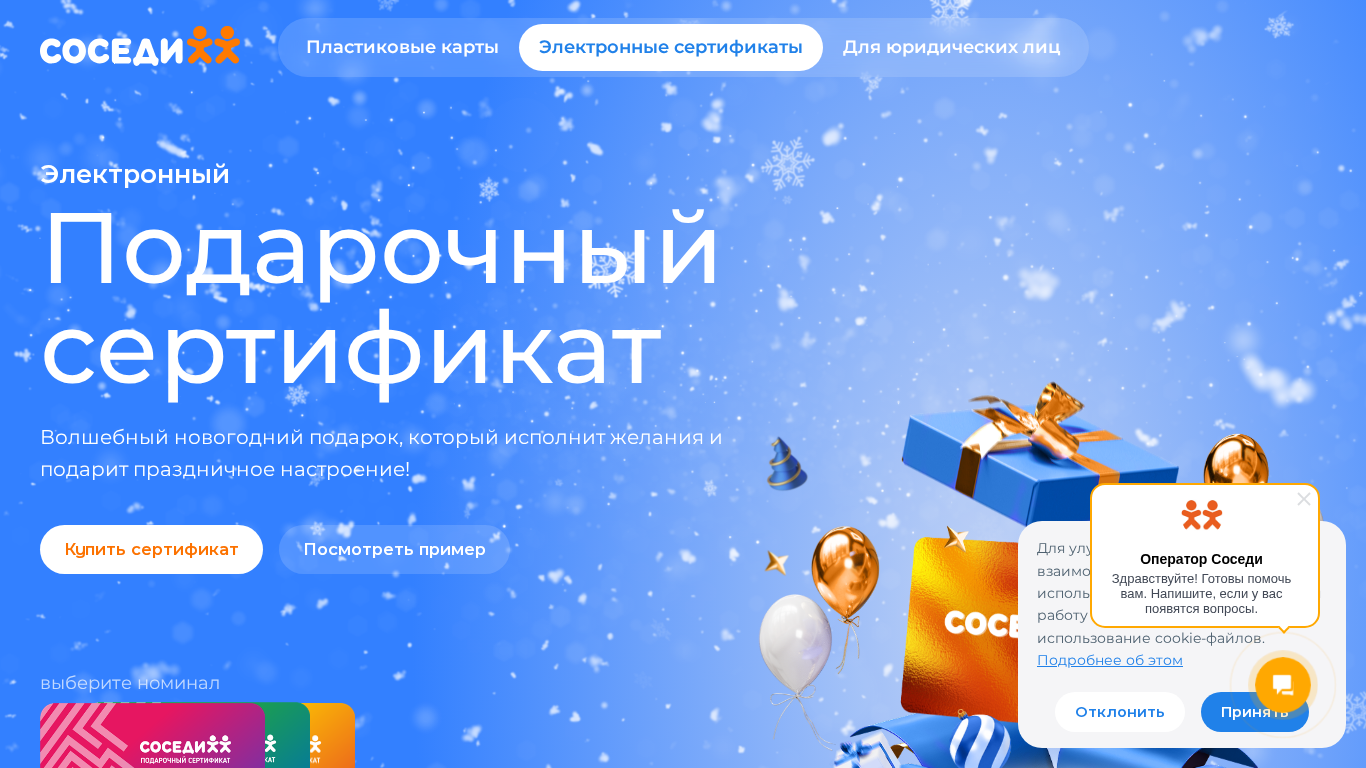| Название / Заголовок | Купить электронный подарочный сертификат СОСЕДИ онлайн |